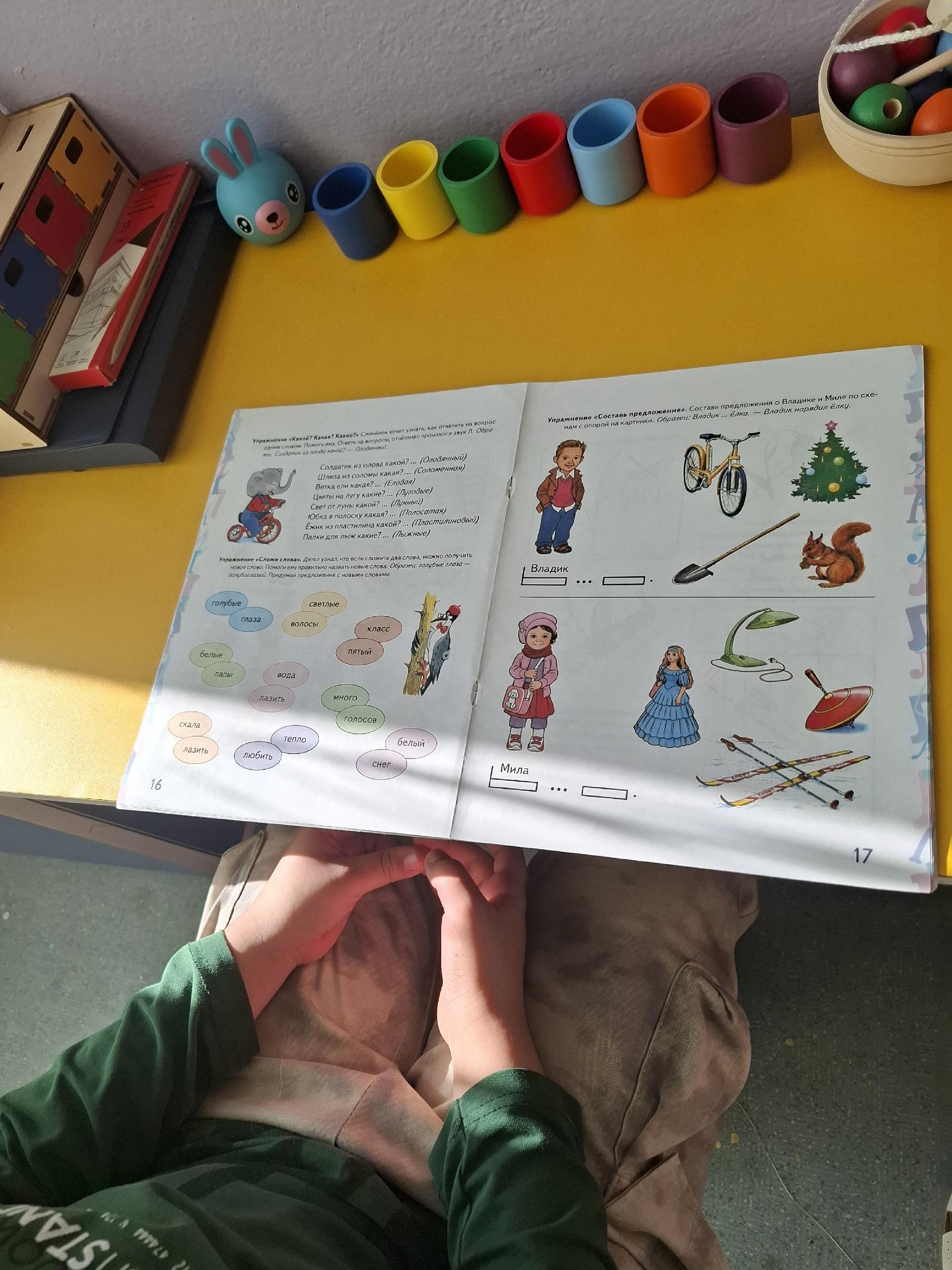 На прошедшей неделе дети на индивидуальных занятиях отрабатывали навыки и умения: определение количества слогов в словах, навыки звукового анализа и синтеза, автоматизация звуков в словах и предложениях, а также закрепляли знания частей суток.